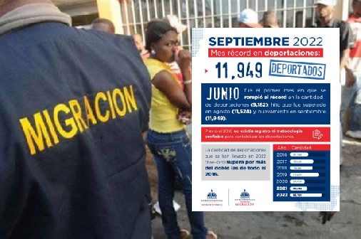 Santo Domingo RD,>La Dirección General de Migración, dependencia del Ministerio de Interior y Policía, informó que la cantidad de deportaciones llevadas a cabo en el mes septiembre (11,949) representa una cifra récord en la historia de la República Dominicana. De igual forma, la cantidad de deportaciones llevadas a cabo de enero a septiembre del presente año (85,780), es más del doble de aquellas registradas en 2016 (37,969).