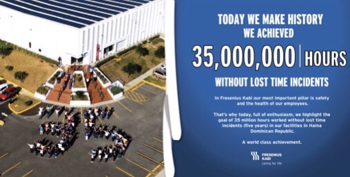 Haina RD,>La planta de la empresa global de atención médicaFresenius Kabi, en Haina, República Dominicana, anunció que recientemente logró 35 millones de horas trabajadas sin registrar ningún accidente relacionado con el trabajo, lo que equivale a cinco años de trabajo sin accidentes en la planta de gran tamaño responsable de la fabricación de dispositivos médicos para salvar vidas.