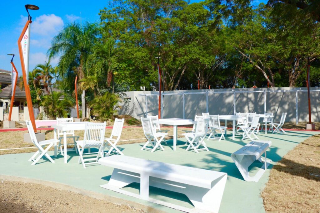 La bella obra también cuenta con bancos en hierro, una hermosa jardinería compuesta por una variedad de plantas, poda de la arborización existente, embellecimiento de todo el entorno y una verja perimetral, además del remozamiento de un anfiteatro, para la celebración de actividades artísticas y culturales, para el sano entretenimiento de las familias santiagueras.