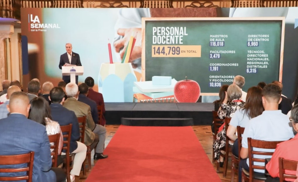Estas informaciones las ofreció el mandatario durante LA Semanal con la Prensa realizada en el salón Las Cariátides del Palacio Nacional y que llevó por tema “Educación garantizada”.