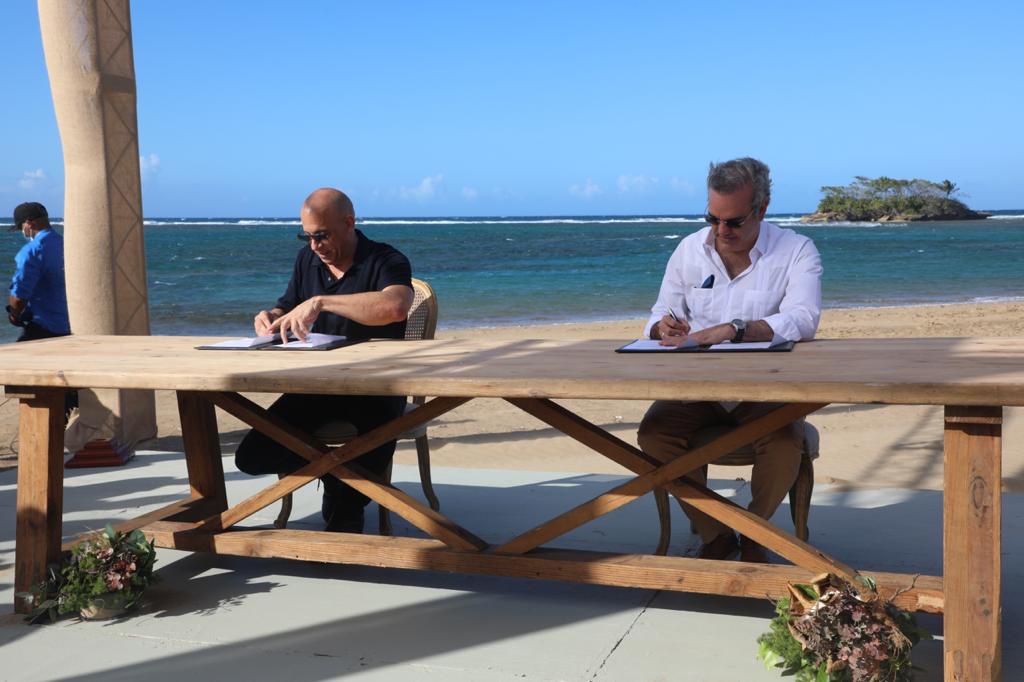 El acuerdo fue firmado justo al lado de la playa Bergantín y en la misma el presidente Abinader y el actor se comprometieron a desplegar todos los esfuerzos y medidas para garantizar la culminación exitosa de este proyecto.