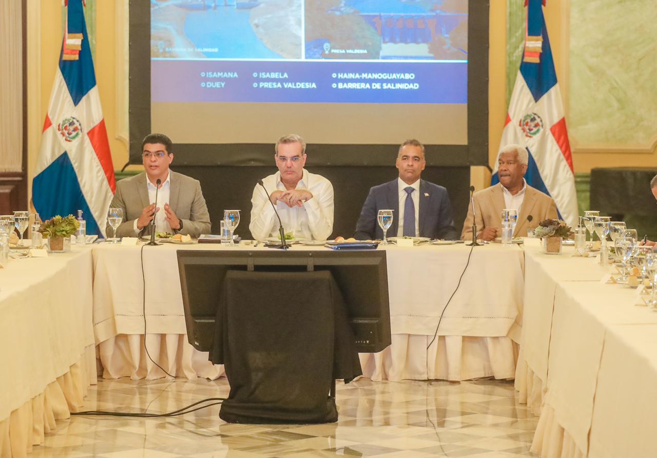 En el encuentro con comunicadores, el Presidente manifestó que en su gestión se está invirtiendo cinco veces más en agua de lo que se invertía en pasadas gestiones, detallando los proyectos de alcantarillado sanitario en el Gran Santo Domingo así como en las cañadas, para la descontaminación del río Ozama.