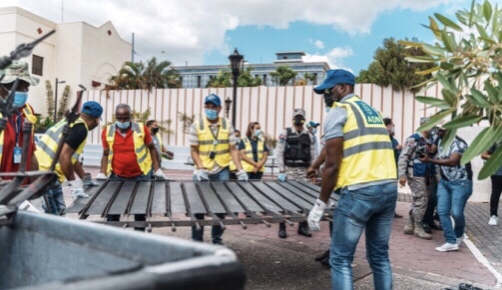 Santo Domingo, D.N.- La alcaldía del Distrito Nacional demolió esta mañana una verja perimetral que fue levanta en forma ilegal en el espacio público Callejón Peatonal, que conecta la calle Miguel A. Piantini con la avenida México, en el sector de San Carlos de esta ciudad.