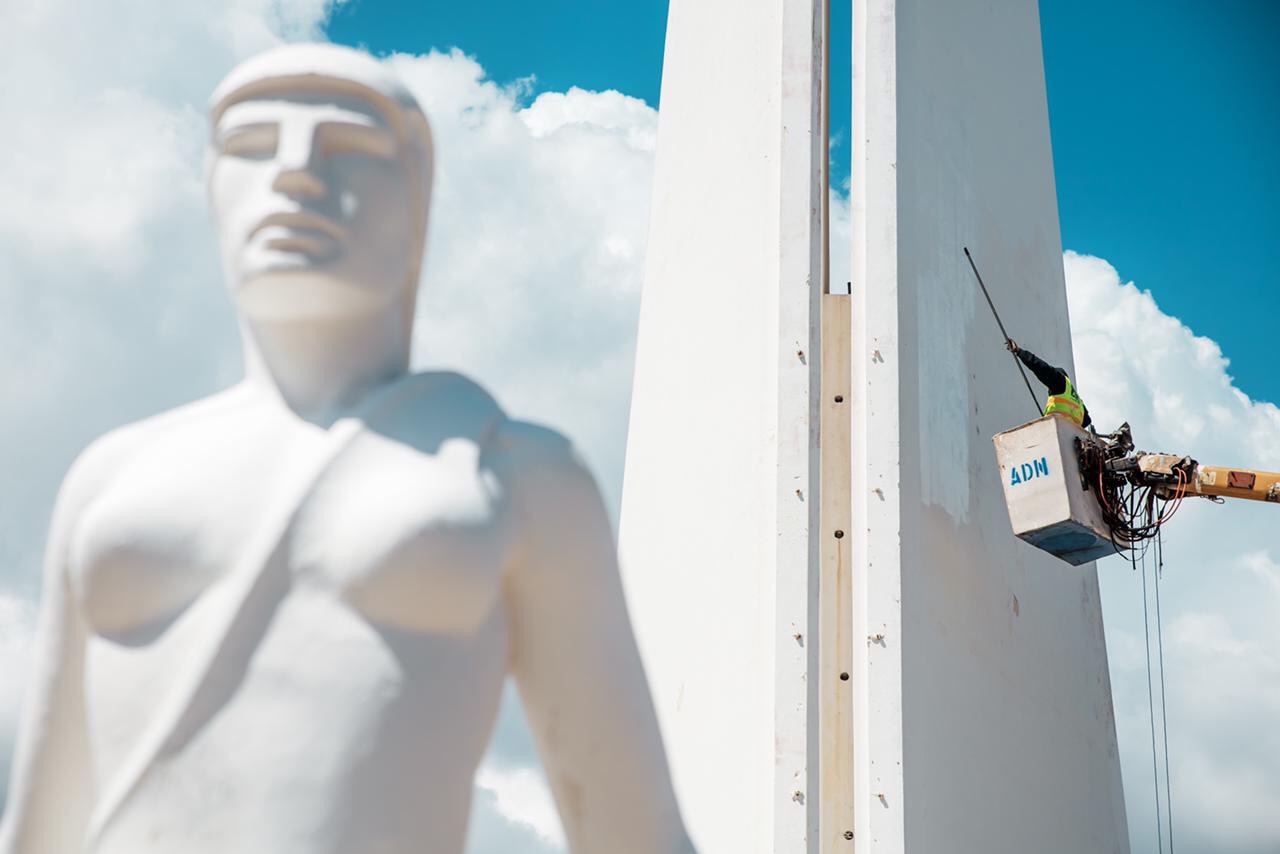 La primera etapa contempló el remozamiento de pasarelas y jardineras, la readecuación de la vegetación de las áreas verdes, reparación de postes y luminarias, así como la instalación de una bomba de agua y de las tuberías necesarias para el puesto en funcionamiento del espejo de agua. Mientras, la imponente estatua fue retocado mediante la reparación de grietas y un terminado en pintura completa. En la acera sur se han colocado bolardos para eliminar el molestoso uso como estacionamiento vehicular.