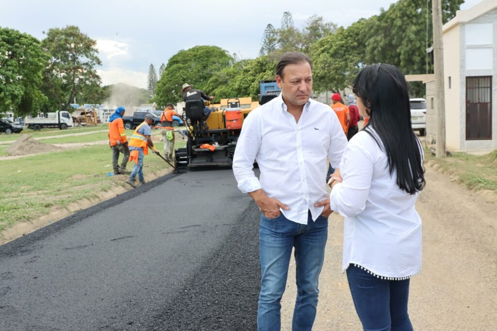 Santiago RD,>El alcalde Abel Martínez, acudió ayer al Cementerio Cristo Vivo, de El Ingenio Abajo, donde se realizan trabajos de asfaltado de las calles interiores y el remozamiento de la capilla de ese camposanto que se encontraban en avanzado deterioro, obras que forman parte de la exitosa gestión que encabeza en todo el municipio.