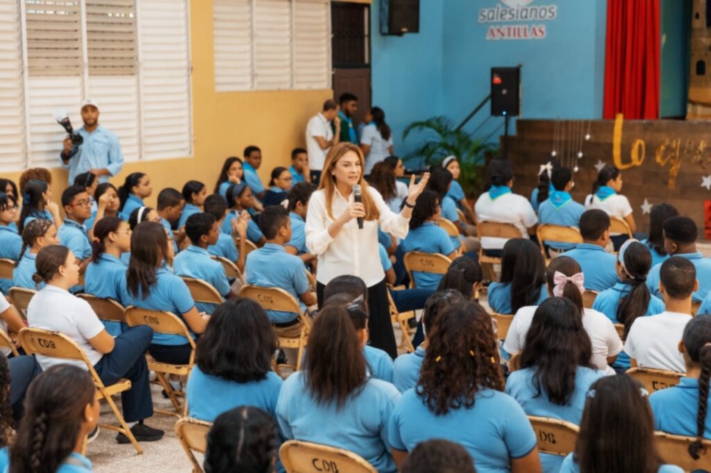 Santo Domingo, DN – La alcaldesa del Distrito Nacional, Carolina Mejía, continuó impartiendo charlas de responsabilidad ciudadana, manejo de residuos sólidos y las funciones del cabildo a estudiantes en los centros educativos Instituto Salesiano Don Bosco y Lux Mundi.