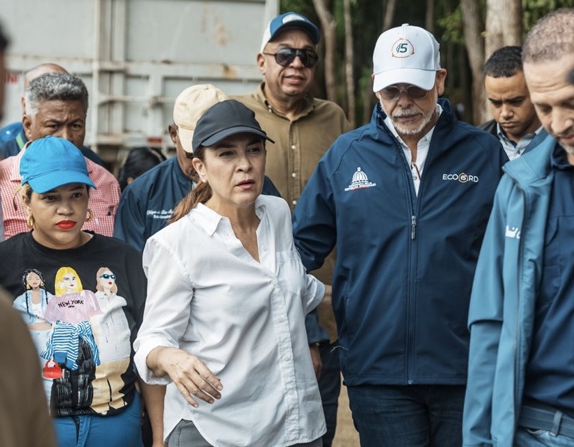 La alcaldesa, junto al presidente de la Cámara de Diputados, Alfredo Pacheco, los ministros de Industria y Comercio, Víctor Ito Bisonó, de Aduanas, Eduardo Sanz Lovaton, de Vivienda y Edificaciones, Carlos Bonilla y el director de la Unidad Ejecutora de Intervención Nacional de Relleno Sanitario de RD (Eco5rd), Carlos Pellerano, estuvieron en La Arenita verificando de primera mano los daños y las acciones implementadas para restablecer la normalidad en la zona.