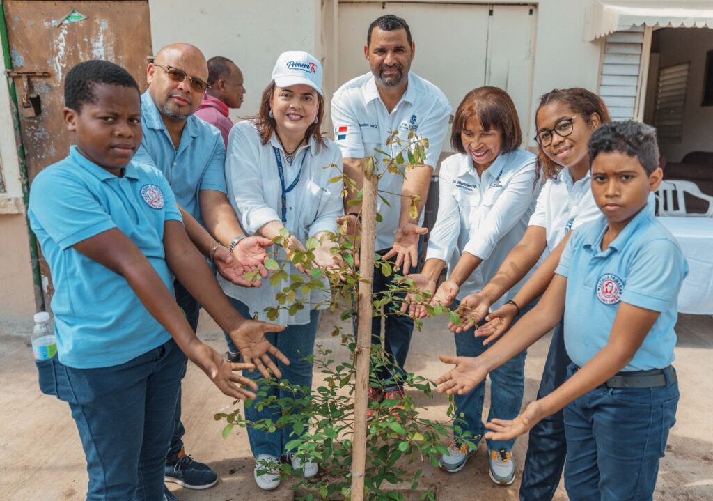 A propósito del mes nacional de la reforestación, durante la plantación de estos árboles participó un grupo de estudiantes de la Escuela Primaria Salomé Ureña y del Colegio Integrado Capotillo junto a colaboradores de la alcaldía.