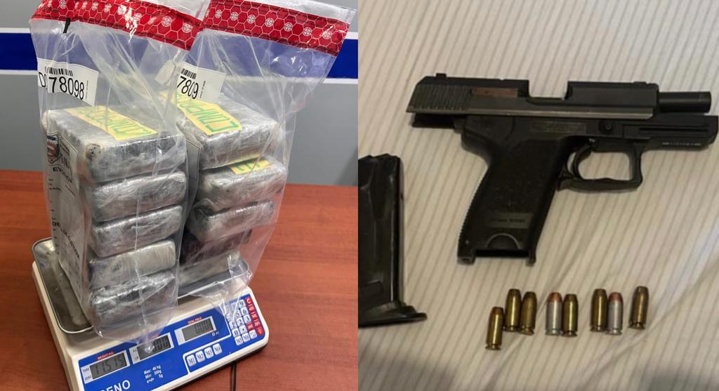 Al abordar a los hombres, en coordinación con el Ministerio Público, se ocupó en el interior de la jeepeta, marca Kia Sorento, placa G595285, detrás del asiento delantero derecho, una bolsa con 10 paquetes presumiblemente cocaína.