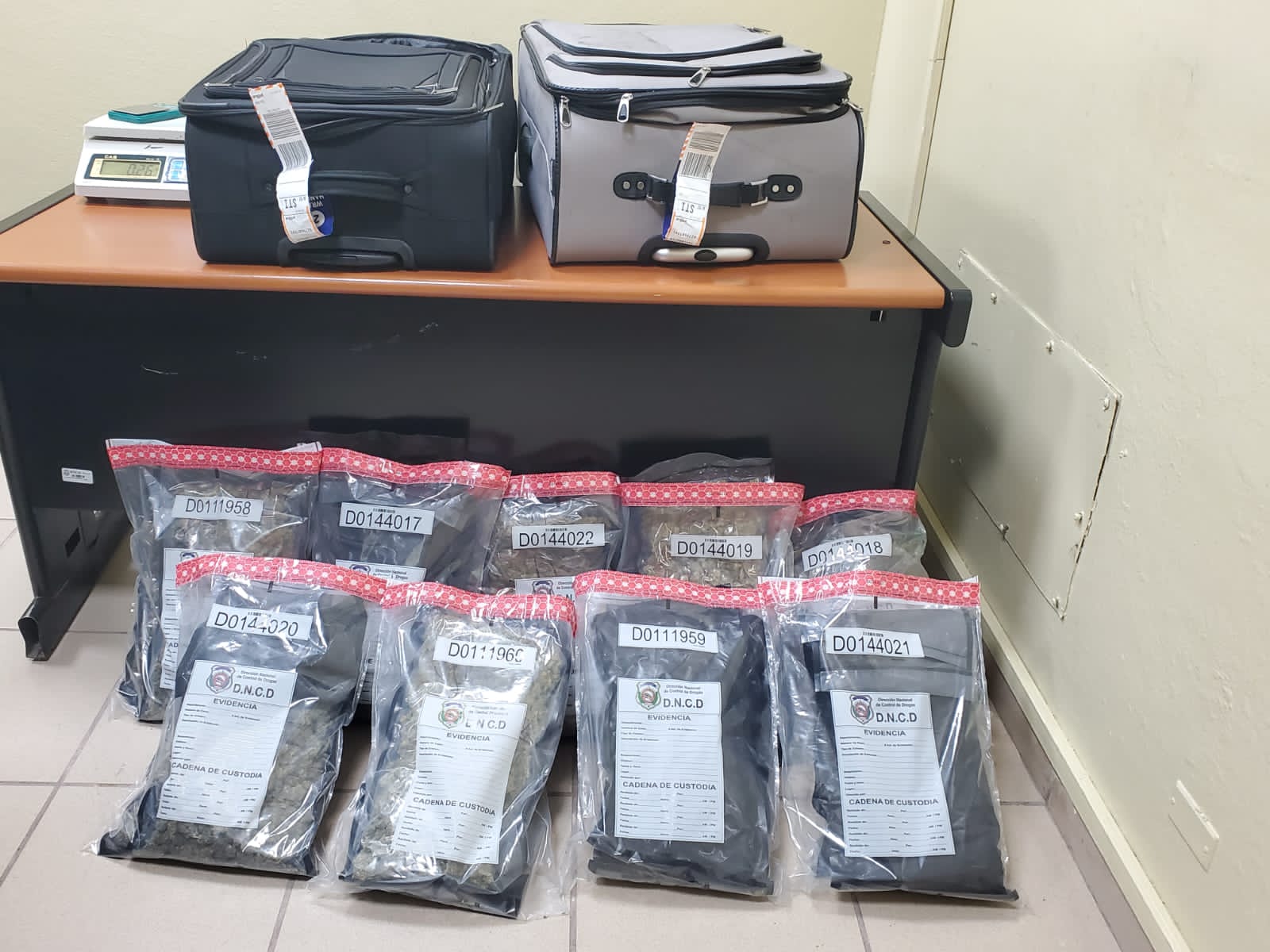 Santo Domingo RD,>La Dirección Nacional de Control de Drogas (DNCD) y miembros del Cuerpo Especializado de Seguridad Aeroportuaria, coordinados por miembros del Ministerio Público, ocuparon en el interior de dos maletas, 21 paquetes presumiblemente marihuana, en medio de un operativo desarrollado en el Aeropuerto Internacional del Cibao, Santiago de los Caballeros.