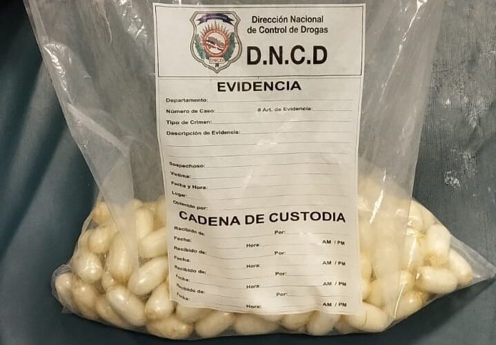 El extranjero de 30 años fue detenido en el área de migración y tras ser sometido al protocolo de rigor, se detectaron cuerpos extraños en sus vías digestivas, procediendo de inmediato por instrucciones del fiscal actuante, trasladarlo al Hospital Nuestra Señora de La Altagracia, donde en principio expulsó 33 bolsitas de la sustancia.