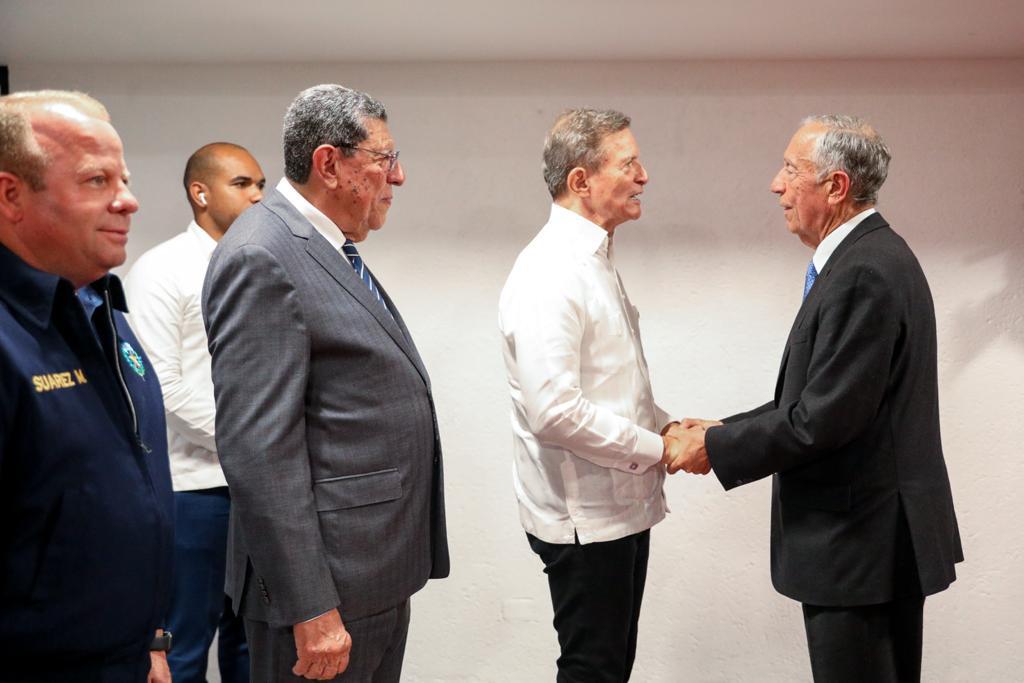 Al bajar del avión, Rebelo de Sousa junto a su comitiva oficial fueron recibidos por el ministro de Relaciones Exteriores, Roberto Álvarez; el embajador Extraordinario y Plenipotenciario de la República Dominicana ante la República Portuguesa, Miguel Prestol; y el director de Ceremonial de Estado y Protocolo, embajador Francisco José Cantizano Nadal.
