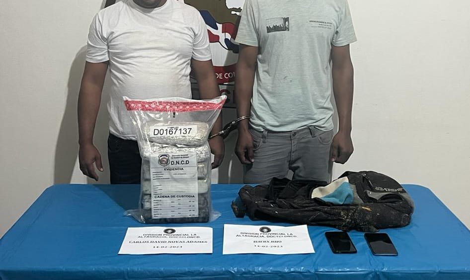 Los detenidos, dos dominicanos de 33 y 36 años respectivamente, fueron entregados al Ministerio Publico de la provincia la Altagracia para conocerles medidas de coerción en las próximas horas, por violacion a la ley 50-88, sobre drogas y sustancias controladas.