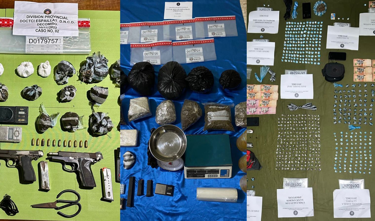 En las operaciones, dirigidas a contrarrestar el microtráfico de drogas, se detuvieron 2, 447 personas y se confiscaron 25 armas de fuego, entre ellas pistolas, revólveres y escopetas, 45 armas blancas, municiones, siete carros, 163 motocicletas y 672 celulares.