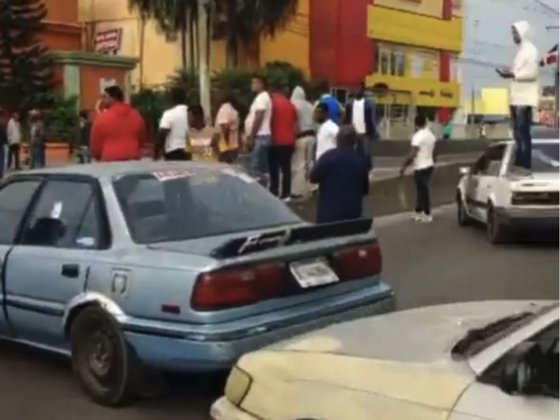Los trabajadores del transporte público parquearon sus unidades en medio de la vía ocasionando un caos, en el entorno de la avenida Hermanas Mirabal, en Villa Mella.