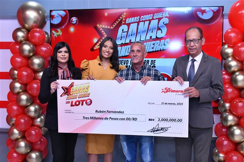Santo Domingo DN, –Rubén Fernández, un hombre de 55 años, se ha convertido en el nuevo ganador de RD$3 millones de pesos, del exitoso juego, el Loto 5 de La Primera.