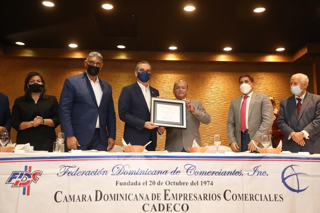 Santo Domingo RD,>El presidente Luis Abinader fue reconocido hoy con el «Premio Juan Pablo Duarte» otorgado por la Federación Dominicana de Comerciantes (FDC), por el apoyo brindado al sector y por el clima de confianza para invertir en la República Dominicana durante los 14 meses de su gobierno.