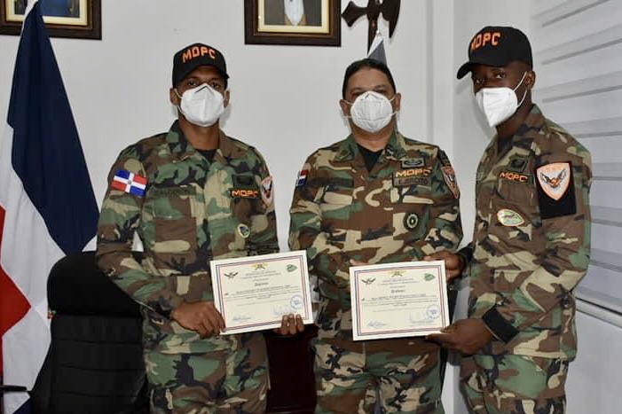 Los rasos Calderón Santana (ERD) y Selmo Magallanes (ERD) recibieron de parte del director, Gral. Vásquez Espínola (ERD) un premio metálico y un reconocimiento por haber concluido de manera satisfactoria tan importante curso.