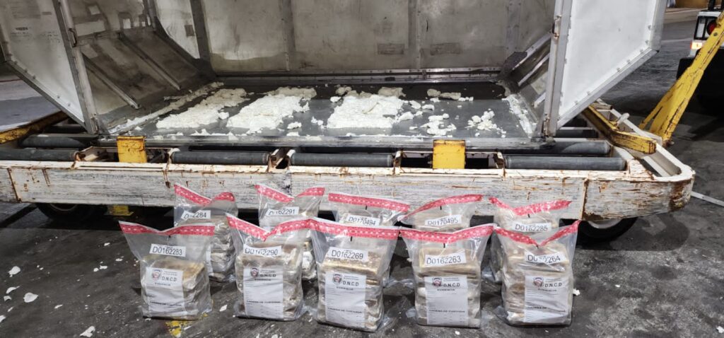 Santo Domingo RD,>En la continuación del reforzamiento de las labores de interdicción en contra del narcotráfico, agentes de la Dirección Nacional de Control de Drogas (DNCD), apoyados por miembros del Cuerpo Especializado de Seguridad Aeroportuaria y coordinados por el Ministerio Público, confiscaron 58 paquetes de cocaína, en medio de un operativo de inspección realizado en el Aeropuerto Internacional de las Américas, JFPG.