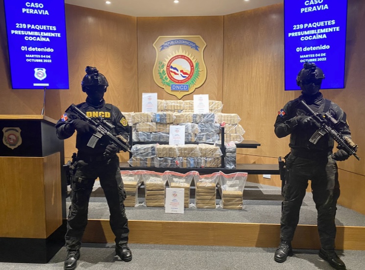 Santo Domingo RD,>La Dirección Nacional de Control de Drogas (DNCD) con el apoyo de la Armada de República Dominicana, agencias de inteligencia del Estado y bajo la coordinación del Ministerio Público, asestaron otro golpe a las redes de narcotráfico internacional, que intentan utilizar el territorio dominicano para sus actividades ilícitas, logrando confiscar otros 239 paquetes presumiblemente cocaína, en medio de un operativo de interdicción marítimo y terrestre, en la provincia Peravia.