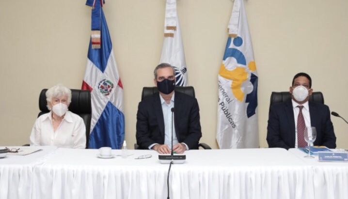 El presidente Luis Abinader y la directora de Ética Gubernamental, Milagros Ortiz Bosch, acudieron a las instalaciones de la Dirección de Contrataciones, donde le fue presentado este sistema que desde ya inició su funcionamiento, según lo expresado por su titular.