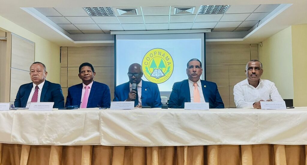 El presidente de COOPNAMA estuvo acompañado de los profesores Francisco Santana, presidente del Consejo de Vigilancia; José Fabio Durán, presidente del Comité de Crédito; Julio César Bugué, vicepresidente del Consejo de Administración y Lucas Figueroa Lapaix, Gerente General.