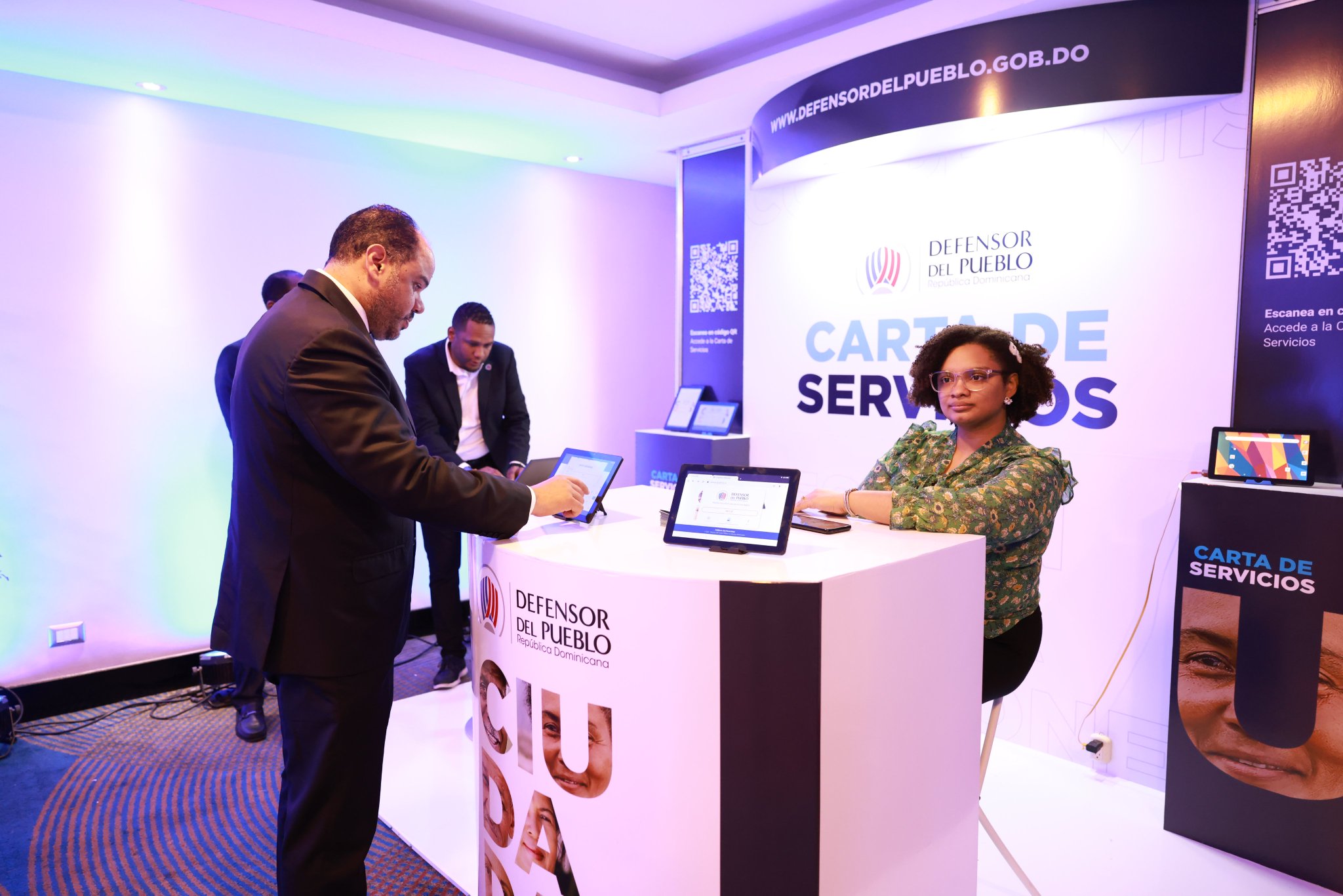 En el marco del lanzamiento de la Carta de Servicios, participaron el secretario general del Defensor del Pueblo, Lic. Harold Modesto; el ingeniero Hiddekel Morrison y el experto en Metadata, Darian Vargas.