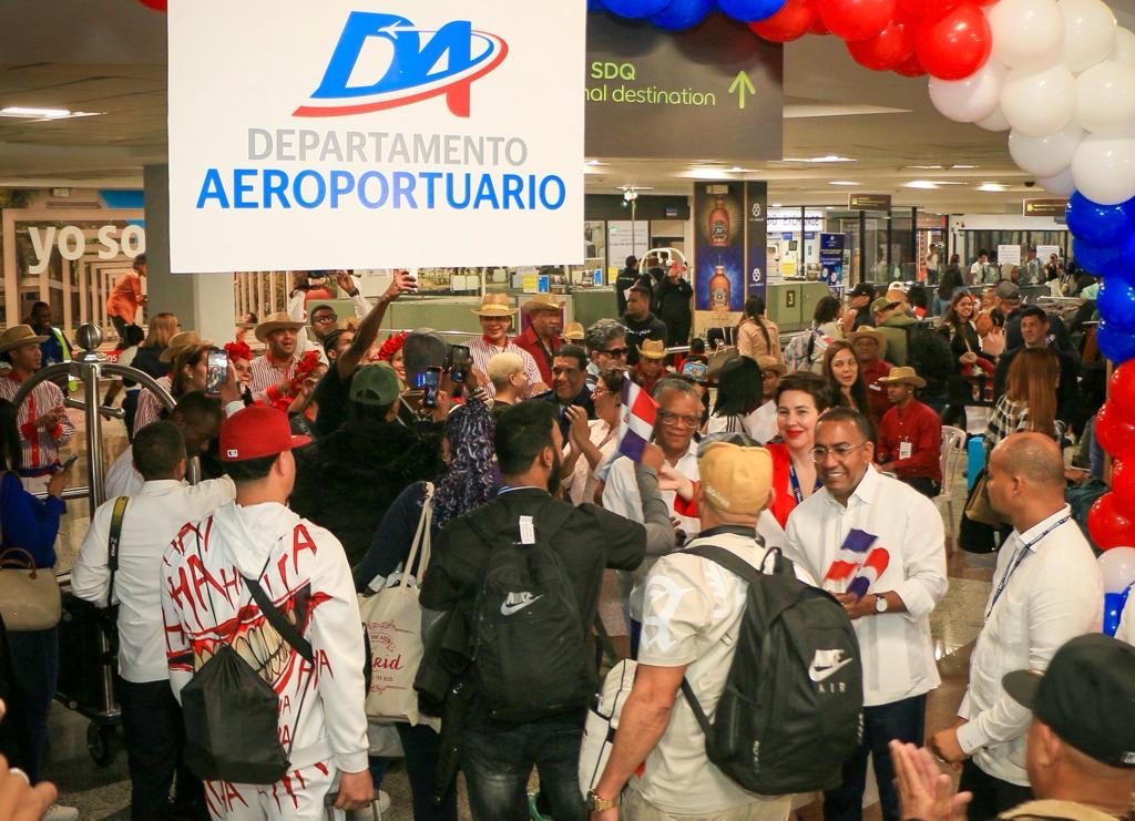 A ritmo del ballet folklórico del Ministerio de Turismo, bailes, aplausos y el ondeo de la enseña tricolor, fueron las primeras impresiones recibidas por los dominicanos a su paso por la rampa de la terminal A, donde en forma organizada un equipo de colaboradores los dirigía a los trámites correspondientes de migración.