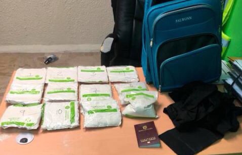 Los agentes de la DNCD, en compañía de un fiscal y unidades caninas, procedieron a requisar el equipaje de la extranjera que llegó a la terminal procedente de Bogotá, Colombia, “encontrándose en su interior 12 láminas de la droga”, según un comunicado de la agencia antidrogas.