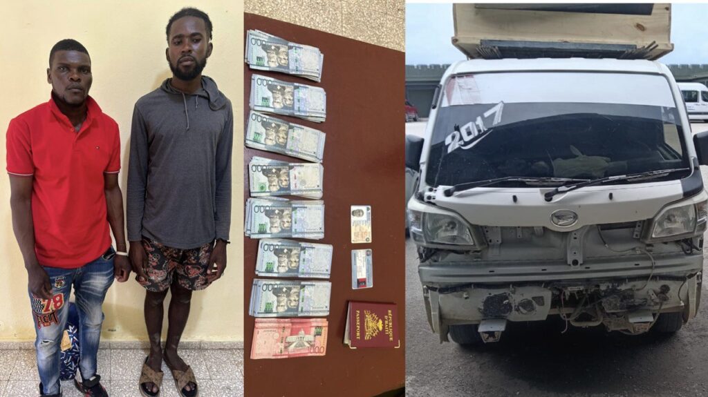 Los detenidos, identificados como Manestin Placide y Jean Romarque Dauphin, fueron interceptados mientras se desplazaban en un camión marca Daihatsu, modelo Hijet, color blanco.