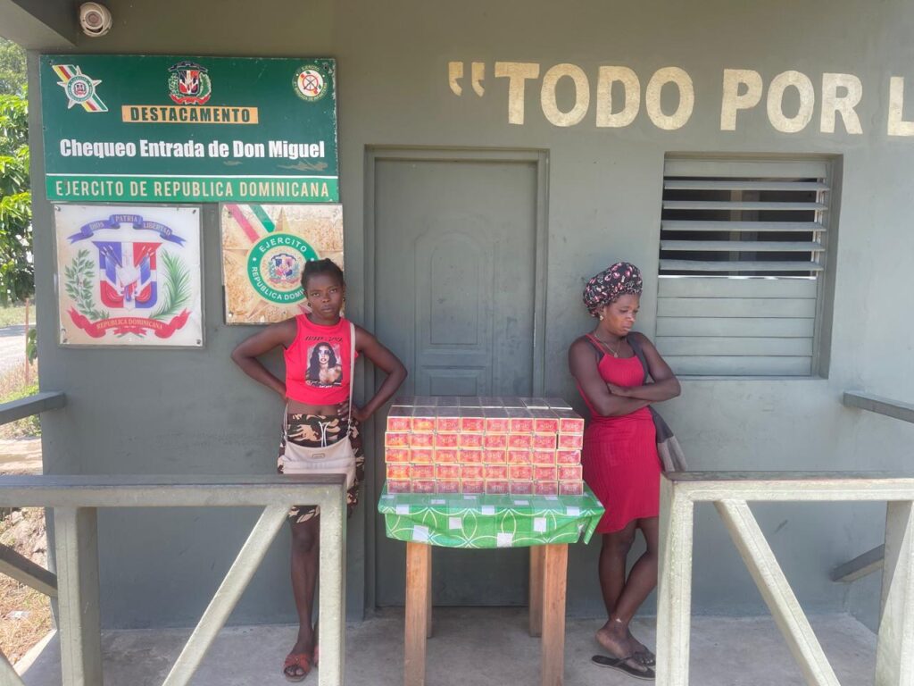 Dajabón RD, -Dos nacionales haitianas en condición migratoria irregular, fueron detenidas por soldados del Ejército de República Dominicana, cuando se desplazaban con 16,000 cigarrillos ilícitos en la comunidad Don Miguel de la provincia Dajabón.