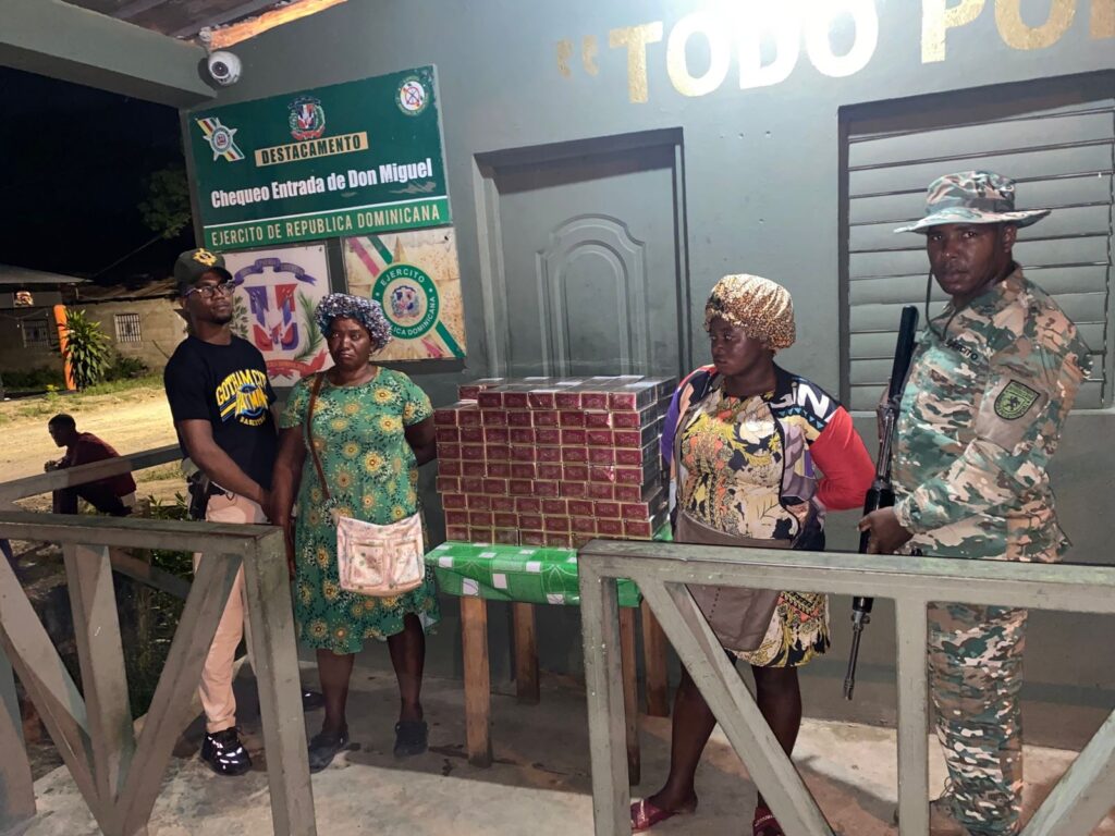 Dajabón RD, -Dos mujeres de nacionalidad haitiana en condición migratoria irregular, con un contrabando de 28,400 unidades de cigarrillos, fueron detenidas por miembros del Ejército de República Dominicana en la localidad de Don Miguel en Dajabón.