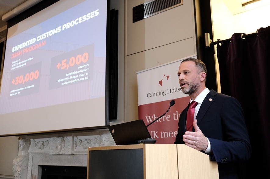 Londres, Reino Unido – La Dirección General de Aduanas (DGA) presentó, ante inversionistas y empresarios británicos, el nivel de competitividad y las condiciones que tiene República Dominicana, que le garantizan como el destino ideal para la inversión extranjera y punto de conexión de las relaciones comerciales entre el Reino Unido y las naciones del Caribe.