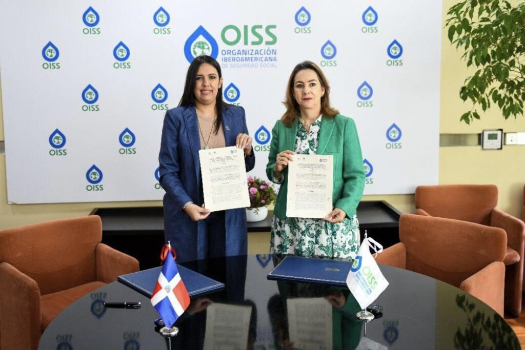 MADRID, ESPAÑA.– La directora general de la Dirección General de Información y Defensa de los Afiliados a la Seguridad Social (DIDA), Carolina Serrata Méndez y la secretaria general de la Organización Iberoamericana de Seguridad Social (OISS) Gina Riaño Barón, firmaron un acuerdo específico como parte de la Escuela de la Seguridad Social, para formar a funcionarios del Sistema Dominicano de Seguridad Social (SDSS), a abogados, periodistas, jueces, fiscales, así como, contribuir a aumentar sus capacidades en la gestión del Sistema de la República Dominicana.