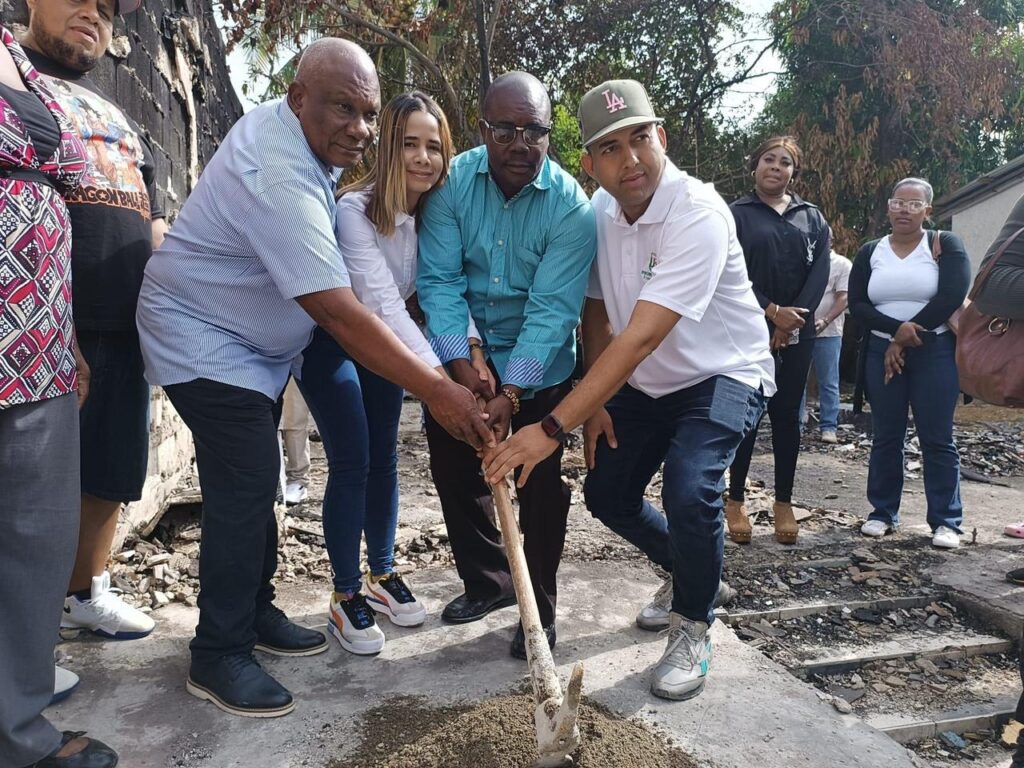 Santo Domingo Este,>En una muestra de solidaridad , El diputado Pedro Julio Alcántara(Pepén ), en combinación con Wendy Cepeda ,candidata alcaldesa y su compañero de boleta Freilin Urbaez dieron el primer Picasso para la construcción de una vivienda a una familia que fue afectada por un incendio en el sector Las Casitas.