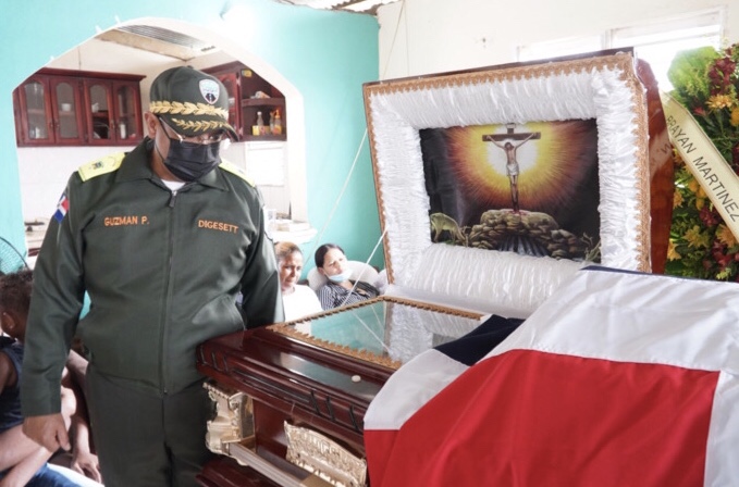 Del mismo modo, El general Guzmán Peralta exhortó a todos los agentes compañeros del fallecido, quienes rindieron guardia de honor ante Féretro del raso Brayan Martínez Brito, P.N., a tener cuidado y seguir adelante.