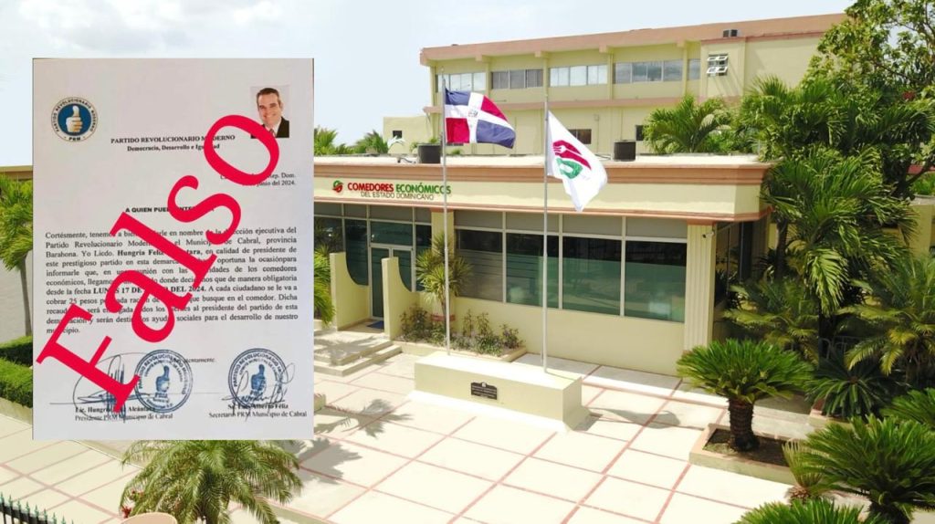 Santo Domingo RD,>El director de los Comedores Económicos del Estado Dominicano, Edgar Augusto Féliz Méndez, negó que sea cierto el documento enviado a los medios de comunicación y colgado en las redes sociales, en donde se anuncia el cobro de 25 pesos a partir del lunes 17 en el Comedor de Cabral, provincia Barahona, por la ración del almuerzo que sirve esa entidad.