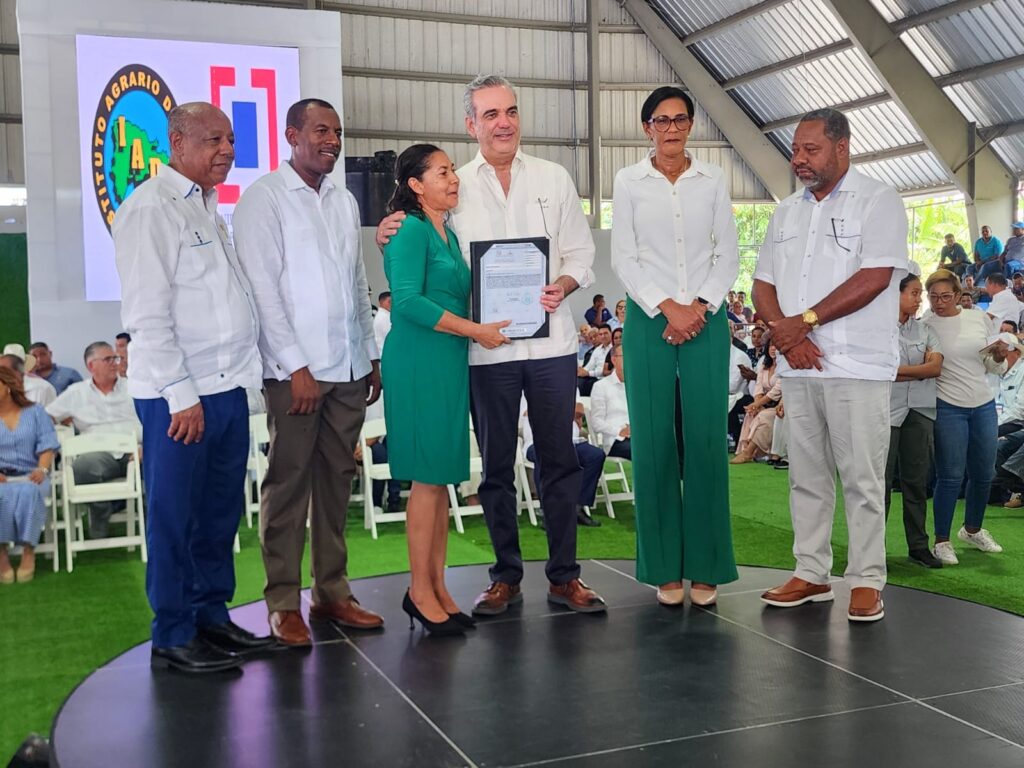 LAS LAGUNAS DE NISIBÓN, La Altagracia: El director general del Instituto Agrario Dominicano (IAD), Francisco Guillermo García, acompañó este jueves al presidente Luis Abinader en el acto de entrega de 723 títulos definitivos de propiedad a igual número de personas, residentes en diversas barriadas de este distrito municipal, perteneciente a esta provincia de la región Oriental.