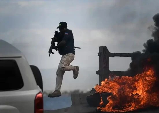 El humo entró en el recinto. Decenas de policías y agentes de seguridad formaron cordones de protección alrededor de las autoridades haitianas en las gradas.