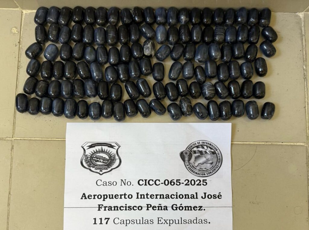 En el caso de la francesa, expulsó 129 cápsulas de cocaína y la dominicana terminó el proceso con 117, para un total de 246 bolsitas, con un peso total de 2.89 kilogramos.