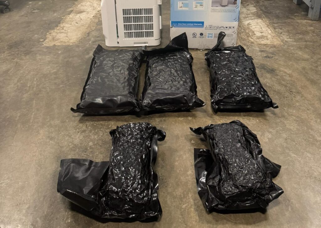 Siguiendo el protocolo de actuación y por instrucciones del fiscal actuante, se procedió a abrir el paquete. En su interior, las autoridades encontraron un acondicionador de aire portátil, que ocultaba cinco paquetes de marihuana envueltos en fundas plásticas de color negro.
