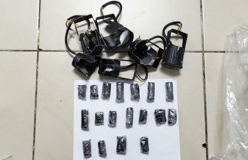Tras una inspección realizada a una caja de cartón, se encontraron varias lámparas, en cuyo interior se ocuparon (escondidas) las porciones de cocaína, envueltas en papel carbón, cuyo peso fue de 180.50 kilogramos, según el análisis del INACIF.