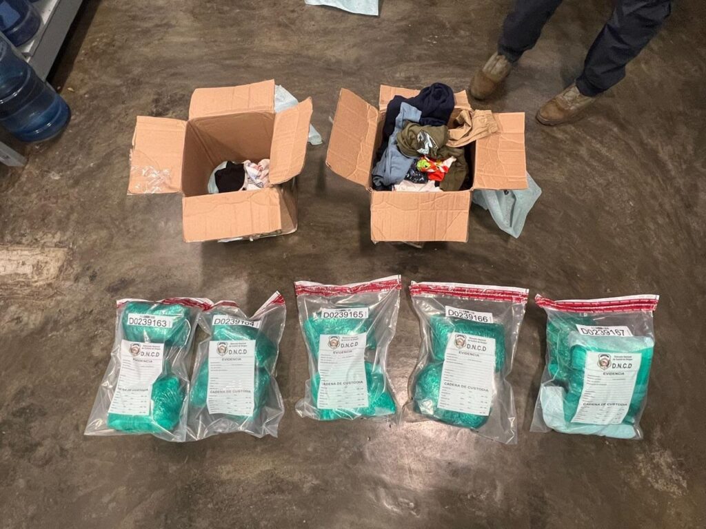 «Las pacas del vegetal, fueron halladas dentro de las cajas en prendas de vestir y envueltas en fundas verdes, las cuales fueron enviadas por una mujer con supuesta dirección en calle 6C, Manhattan, Nueva York y la recibiría un individuo, que segun el manifiesto reside en el Residencial Villa III, en Santo Domingo»,