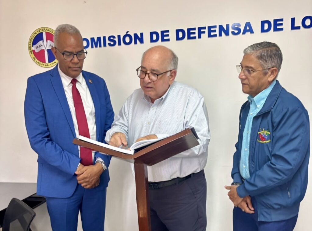 Santo Domingo RD, –El Mayor General (R) Valerio García Reyes, ERD. Presidente de la Hermandad de Veteranos FF.AA. y P.N. recibió en su despacho al abogado, historiador y comunicador Dr. José Baez Guerrero, quien se comprometió a colaborar con la Hermandad y se integrará como miembro del Consejo del Museo de la Defensa e Identidad Nacional aportando sus conocimientos y piezas históricas.