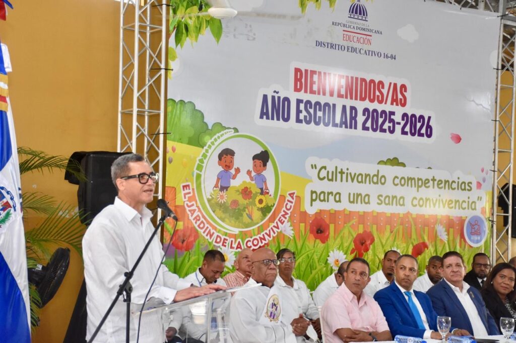 Bonao RD, -El ministro de Trabajo, Eddy Olivares Ortega, encabezó este lunes el acto oficial de apertura del año escolar 2025-2026, en la provincia Monseñor Nouel, en representación del presidente de la República, Luis Abinader, y del ministro de Educación, Luis Miguel De Camps, como muestra del compromiso del Gobierno con una educación de calidad.