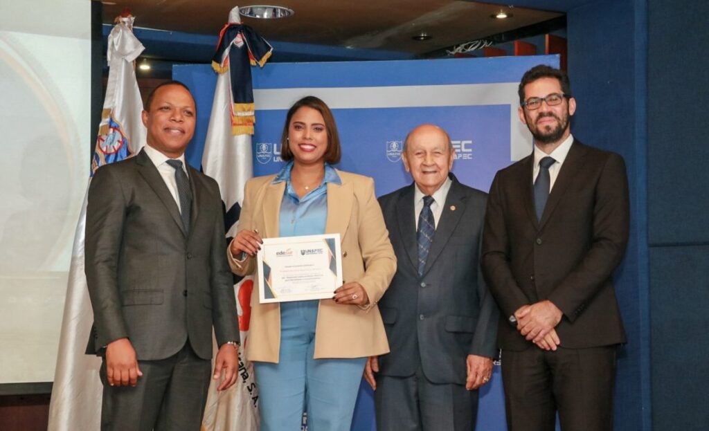 El administrador general de Edesur Dominicana reconoció al rector de la Universidad APEC, Franklin Holguín, y al decano de la facultad de ciencias e ingeniería, Emín Rivera, “como muestra de agradecimiento por su apoyo incondicional a Edesur Dominicana para el desarrollo exitoso del diplomado, y por reafirmar su compromiso a través de iniciativas educativas que fomentan el desarrollo social”.