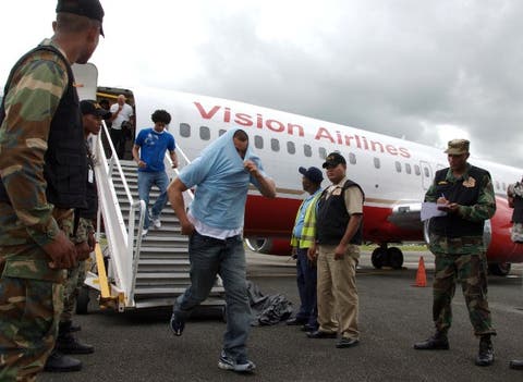 A su llegada al AILA fueron entregados a las autoridades de la Dirección General de Migración y funcionarios del Cuerpo Especializado de Seguridad Aeroportuaria (CESAC).