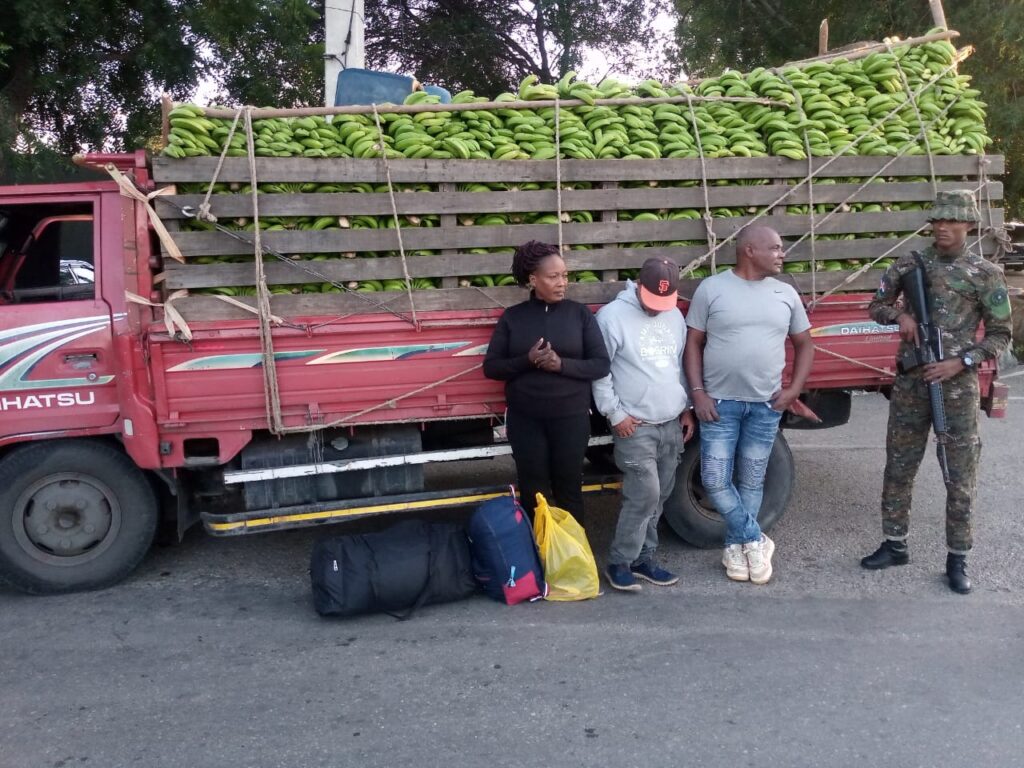 Dos de los detenidos transportaban una nacional haitiana en estatus migratorio irregular camuflada en bananos
