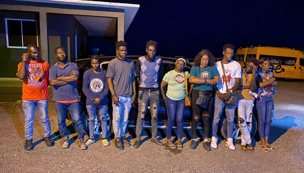 El conductor de la jeepeta Kia Sportage, color negro, placa G699328, al percatarse de la presencia militar abandonó el vehículo dejando abandonados en su interior a los diez 10 ciudadanos haitianos con estatus migratorio irregular, entre ellos siete 07 hombres y tres 03 mujeres.