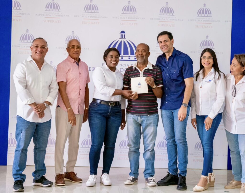 Roberto Ángel, director general de Proyectos Especiales de la Presidencia, encabezó la entrega junto a la subdirectora del programa SUPÉRATE, Siria Frías; 74 pequeños comerciantes fueron beneficiados_
